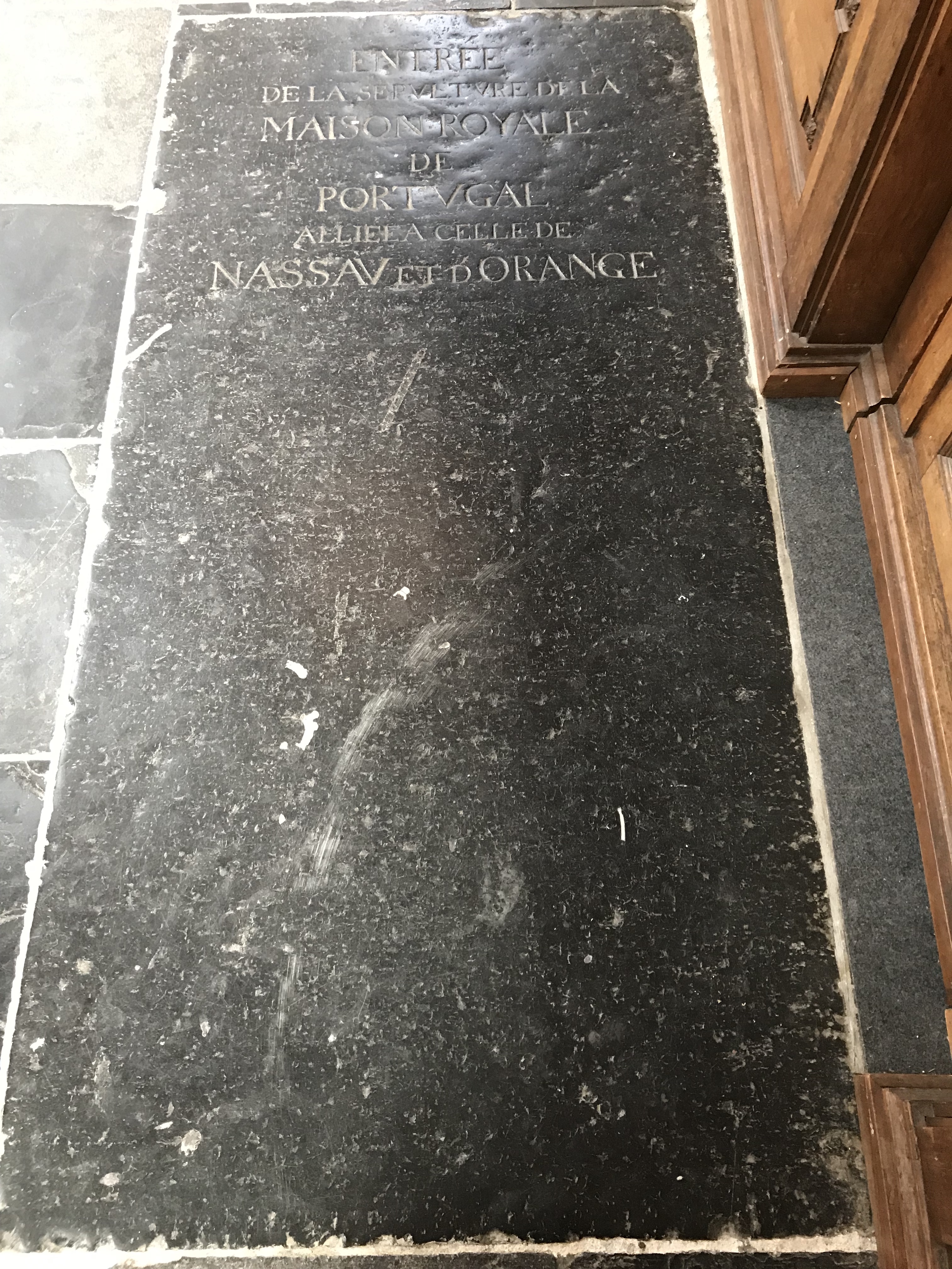 In the New Church, William of Orange is placed in a large underground mausoleum. It is a remarkable interior as well. The layout of the church is well organized for tourists. A nice orange floor leads you around the room with information on the royal family resting below. There is also a video that shows the ceremonial burial for certain family members of the royals. This is nice as you can see how the church prepares with beautiful flowers and decorations for the ceremony. You can also see the large floor cover removed and the entrance to the mausoleum below.