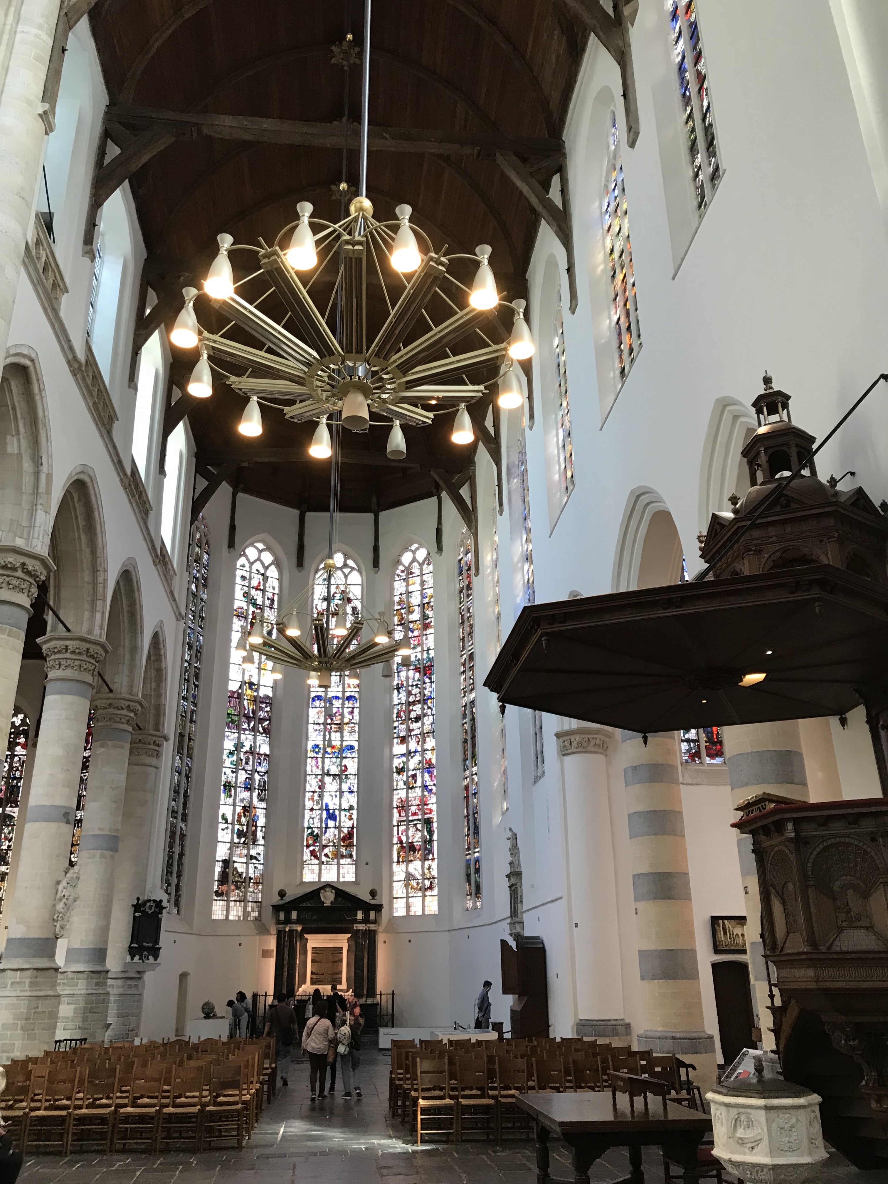 The Oude Kirch and the Neue Kirch are both remarkable buildings to visit. The Old church is where Johannes Vermeer, master painter, is lying eternally. Piet Heyn, a Dutch admiral and privateer, aka pirate is also placed here. He is famous for intercepting the treasures of 16 Spanish ships without any bloodshed. Heyn captured 11,509,524 guilders of booty in gold, silver, and other expensive trade goods, such as indigo and cochineal. The church is pre-reformation so includes beautiful gothic architecture. Obviously, due to the protestant reformation, iconoclasm affected the interior of the church. It lacks the religious sculptures and abundance of gold, which most catholic churches would contain. But in protestant eyes, the idea of a church is to solely connect to God one on one, there is no need for the representation of angels, Jesus suffering, or saints.